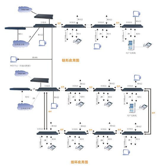 SOC-G08-R400/R800多業(yè)務(wù)傳輸系統(tǒng)是華光高科電子有限公司近期推向市場的新產(chǎn)品系列,它包括主端箱、輔端箱、中繼箱和音頻擴(kuò)展箱、2M擴(kuò)展箱5種主要設(shè)備。這些設(shè)備的不同組合,可以組成點(diǎn)對(duì)點(diǎn)、鏈型、環(huán)型不同的網(wǎng)絡(luò)拓?fù)浣Y(jié)構(gòu),連接環(huán)型網(wǎng)絡(luò)時(shí),具有自愈保護(hù)功能(保護(hù)倒換時(shí)間小于50ms)。能實(shí)現(xiàn) 2M、10/100M以太網(wǎng)、2/4線音頻、FXO和FXS 等多種業(yè)務(wù)接口的綜合傳輸。這些設(shè)備都采用19英寸1U 標(biāo)準(zhǔn)機(jī)箱,統(tǒng)一網(wǎng)管,易于安裝,便于維護(hù),并且具有完善的網(wǎng)管告警功能和環(huán)回測(cè)試功能,可用于廣電、各電信運(yùn)營商的公用網(wǎng)和公安、部隊(duì)、電力、鐵路公路交通、金融、政府及具有分支機(jī)構(gòu)的企事業(yè)單位的專用網(wǎng)。特別是對(duì)于10/100M以太網(wǎng)接口要求較多、可靠性高、有自愈保護(hù)功能、以太網(wǎng)傳輸通道需要相互獨(dú)立的應(yīng)用場合,具有明顯的優(yōu)勢(shì)。